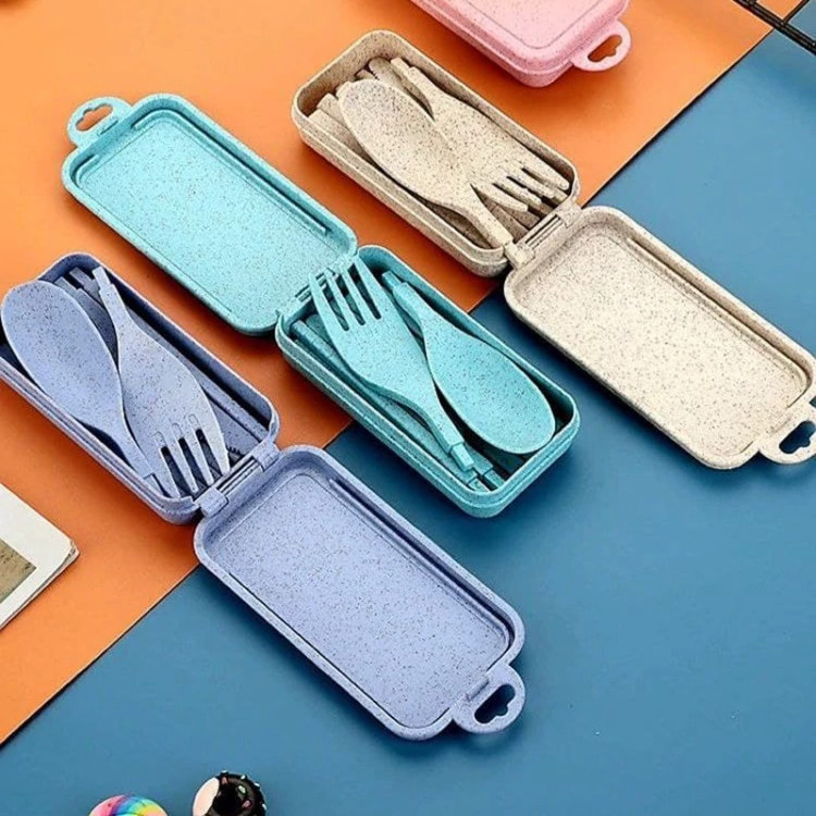 ست کامل قاشق چنگال و کارد همراه با جعبه مخصوص مناسب مسافرت و کوله بسیار کم حجم قابل جدا شدن دسته قاشق چنگال