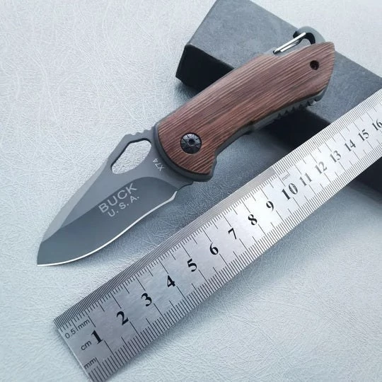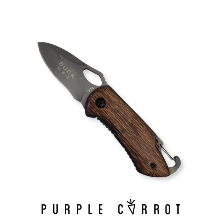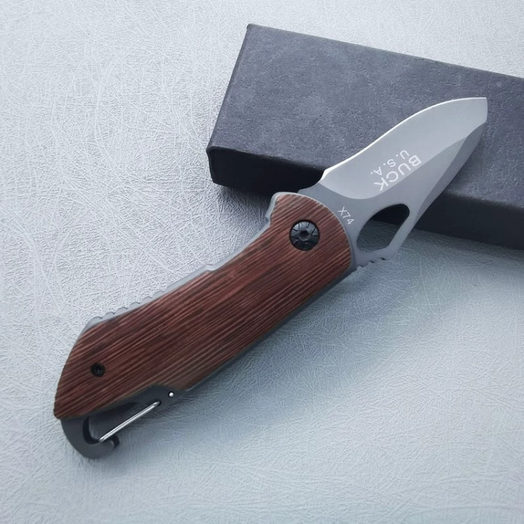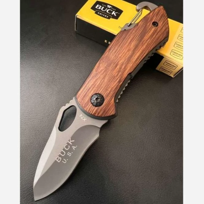 چاقوی سفری جیبی مدل x74 طول چاقو : 15 cm طول دسته : 9 cm طول تیغه: 6 cm عرض تیغه : 3 cm ضخامت تیغه : 3 mm جنس تیغه: فولاد استیل ضدزنگ جنس دسته: چوب ونگه آفریقایی وزن : 98 گرم نوع ضامن : لاینر لاک مناسب برای:کوهنوردان، وطبیعت دارای قلاب کمری (کارابین)