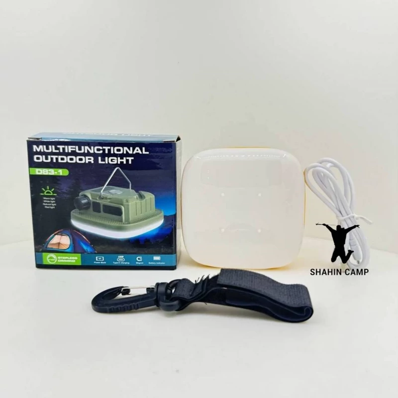 لامپ شارژی کمپینگ چندکاره آویز دار مدل D83-2 با بدنه مقاوم ABS،