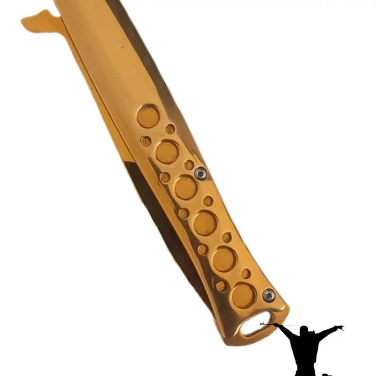 اگر به دنبال یک چاقوی جیبی با پرستیژ بالا و ظاهری خیرهکننده هستید، چاقو گادفادر طلایی کلکسیونی از برند معتبر Rige Runner بیشک شما را مجذوب خود خواهد کرد. این محصول با الهامگیری از سبک طراحی کلاسیک و مافیایی گادفادر (پدرخوانده) ایتالیایی ساخته شده است. رنگ طلایی درخشان و طراحی کشیده و تیز آن، حسی از قدرت، اصالت و لوکس بودن را به کاربر القا میکند.