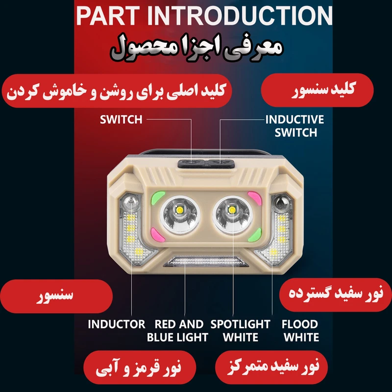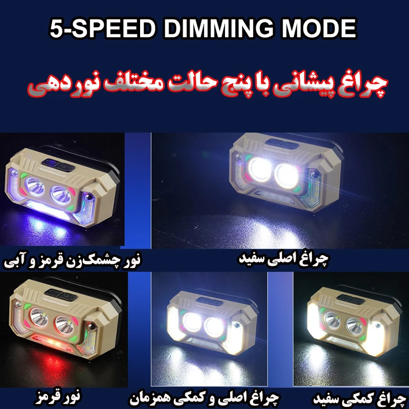 ا معرفی چراغ پیشانی سنسوردار و شارژی، دیگر تاریکی مانعی برای ماجراجوییها و فعالیتهای شما نخواهد بود. این هدلایت حرفهای که با نام چراغ قوه پیشانی نیز شناخته میشود، ابزاری ایدهآل و بسیار سبک برای علاقهمندان به کوهنوردی، کمپینگ، ماهیگیری در شب و طبیعتگردی است. یکی از برجستهترین ویژگیهای این محصول، سنسور حرکتی هوشمند آن است که به شما اجازه میدهد تنها با حرکت دست از فاصله ۱۵ سانتیمتری، چراغ را روشن یا خاموش کنید؛ قابلیتی که آزادی عمل کامل را در شرایط مختلف برایتان فراهم میآورد. این چراغ پیشانی قدرتمند با داشتن پنج حالت نوردهی مختلف، برای هر موقعیتی پاسخی مناسب دارد. حالتهای نور شامل چراغ اصلی سفید متمرکز، چراغ کمکی سفید گسترده، استفاده همزمان از هر دو چراغ برای دستیابی به حداکثر روشنایی، نور قرمز ثابت برای حفظ دید در شب و نور چشمکزن قرمز و آبی برای مواقع اضطراری است. گستره نوردهی وسیع این دستگاه، دیدی واضح و شفاف را در تاریکی مطلق تضمین میکند. باتری داخلی قدرتمند این هدلایت با یک بار شارژ کامل، تا ۱۲ ساعت کارایی مداوم را در حالت استفاده عادی ارائه میدهد و شما را در طول یک شب کامل همراهی میکند. شارژ این دستگاه نیز به لطف بهرهگیری از پورت مدرن USB-C بسیار آسان است و میتوان آن را با استفاده از انواع منابع تغذیه مانند پاوربانک، شارژر دیواری، لپتاپ یا حتی شارژر فندکی خودرو شارژ نمود. این ویژگی، آن را به یک همراه همیشگی و قابل اعتماد در سفرها تبدیل کرده است. علاوه بر تمام این قابلیتها، این چراغ پیشانی ضد آب بوده و برای استفاده روزمره و بدون نگرانی در روزهای بارانی طراحی شده است تا با خیال راحت به کاوش و فعالیت بپردازید. از این رو ما چراغ T129 را به عنوان چراغ پیشانی سنسوردار شارژی، هدلایت کوهدلایت شارژی با سنسور حرکتی و باتری قوی به شما پیشنهاد می دهیم ضد آب، بهترین چراغ پیشانی برای کمپینگ و ماهیگیری،